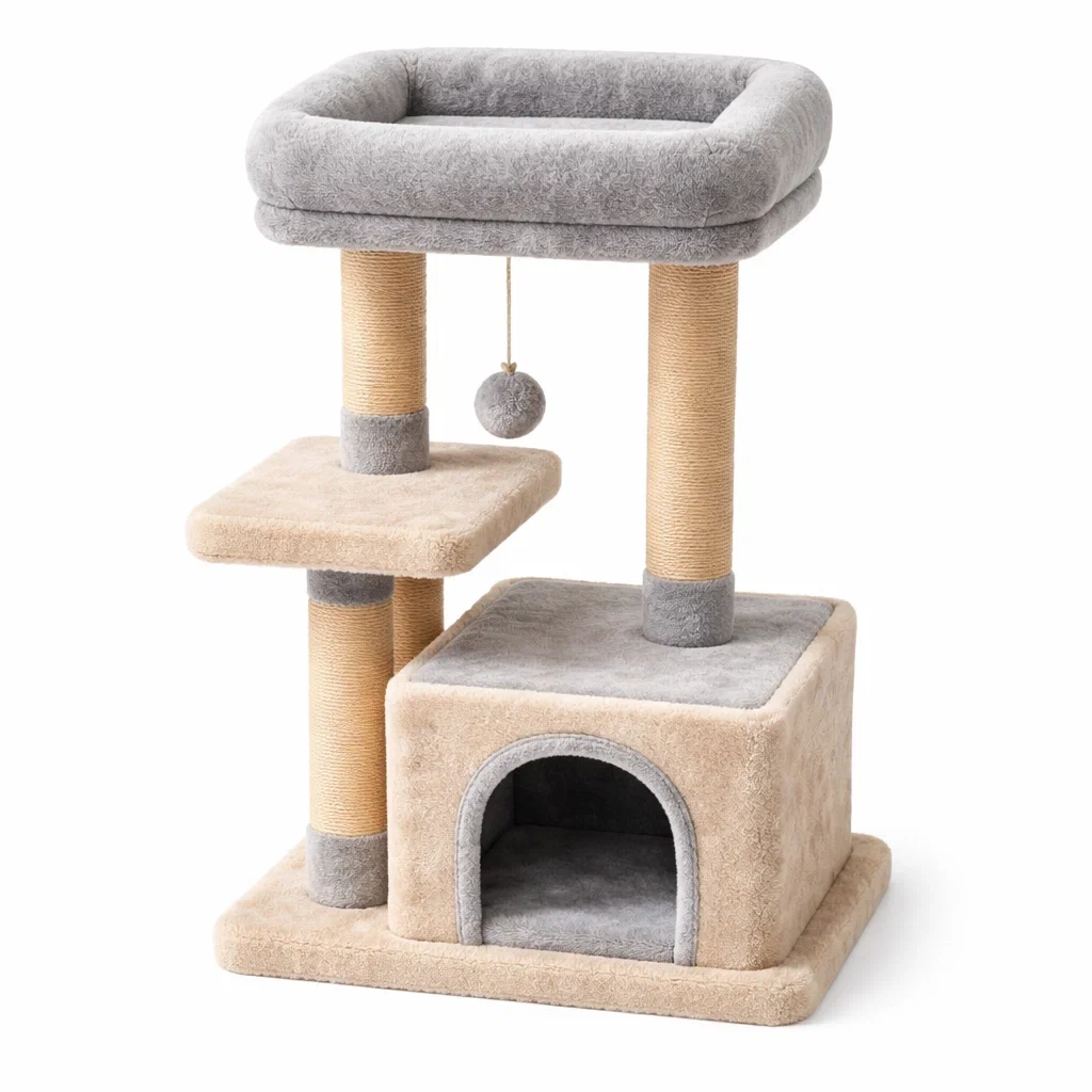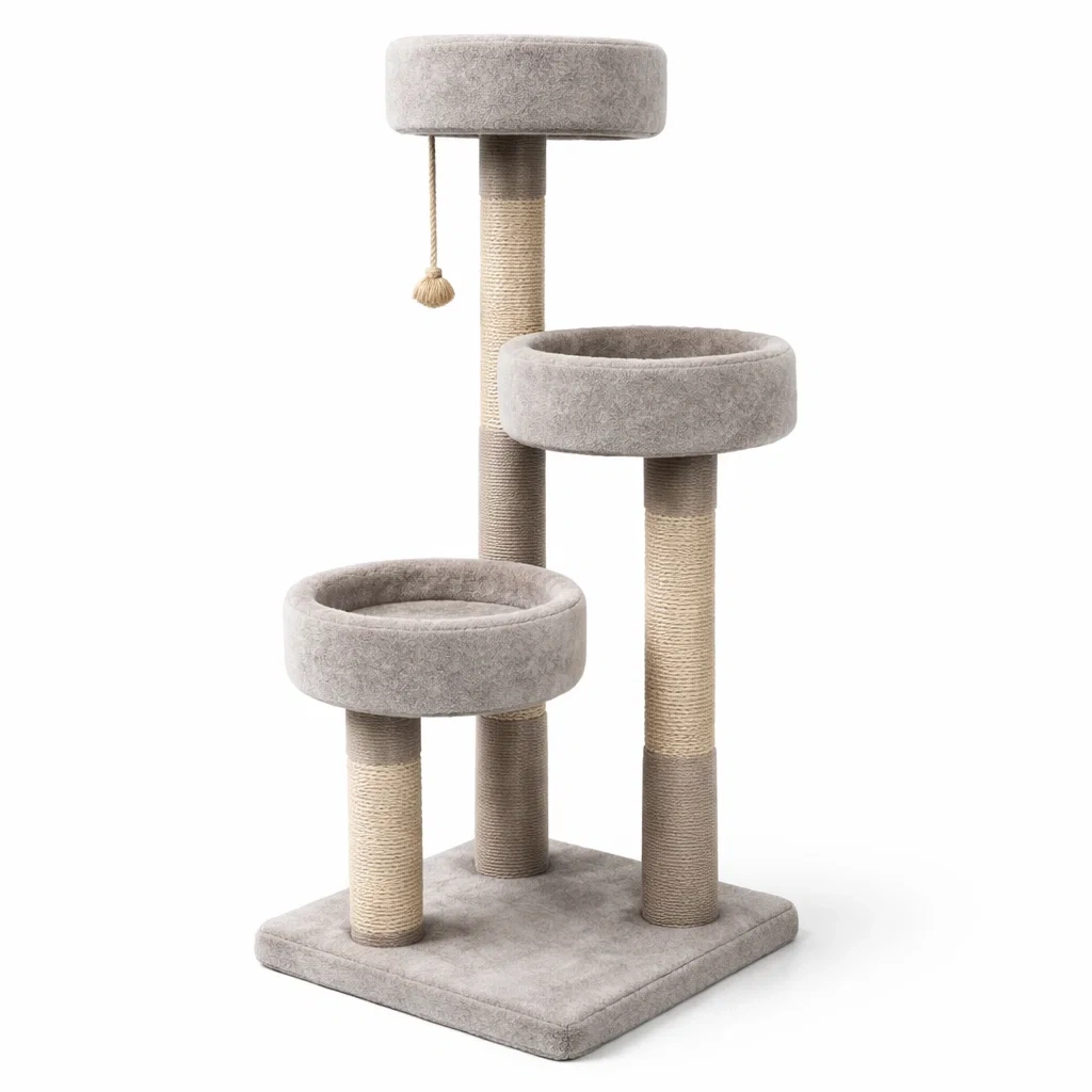Arbre à chat en MDF avec peluche et sisal gris et beige