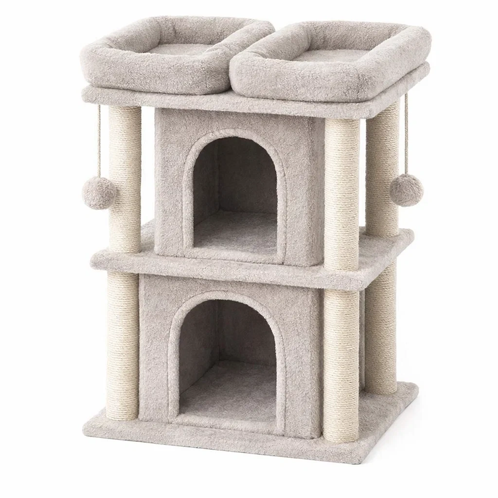 Arbre à chat comprenant deux niveaux pour le jeu et le repos.