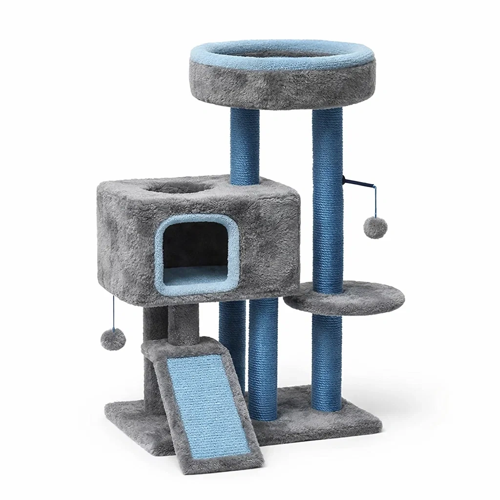 Arbre à chat avec plateforme spacieuse, griffoir intégré et niche confortable fabriqué en MDF solide. Recouvert de peluche douce pour le confort des chats.