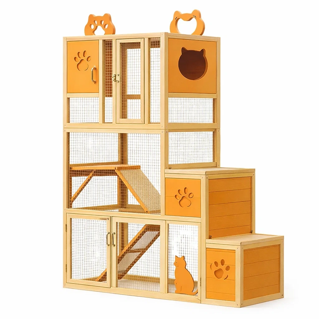 Fonction : Enclos sécurisé pour chats avec plateformes et rampes