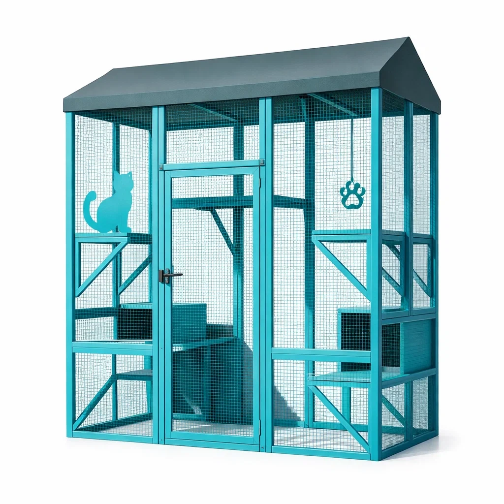 Enclos pour chat en métal galvanisé avec toit en tissu imperméable bleu