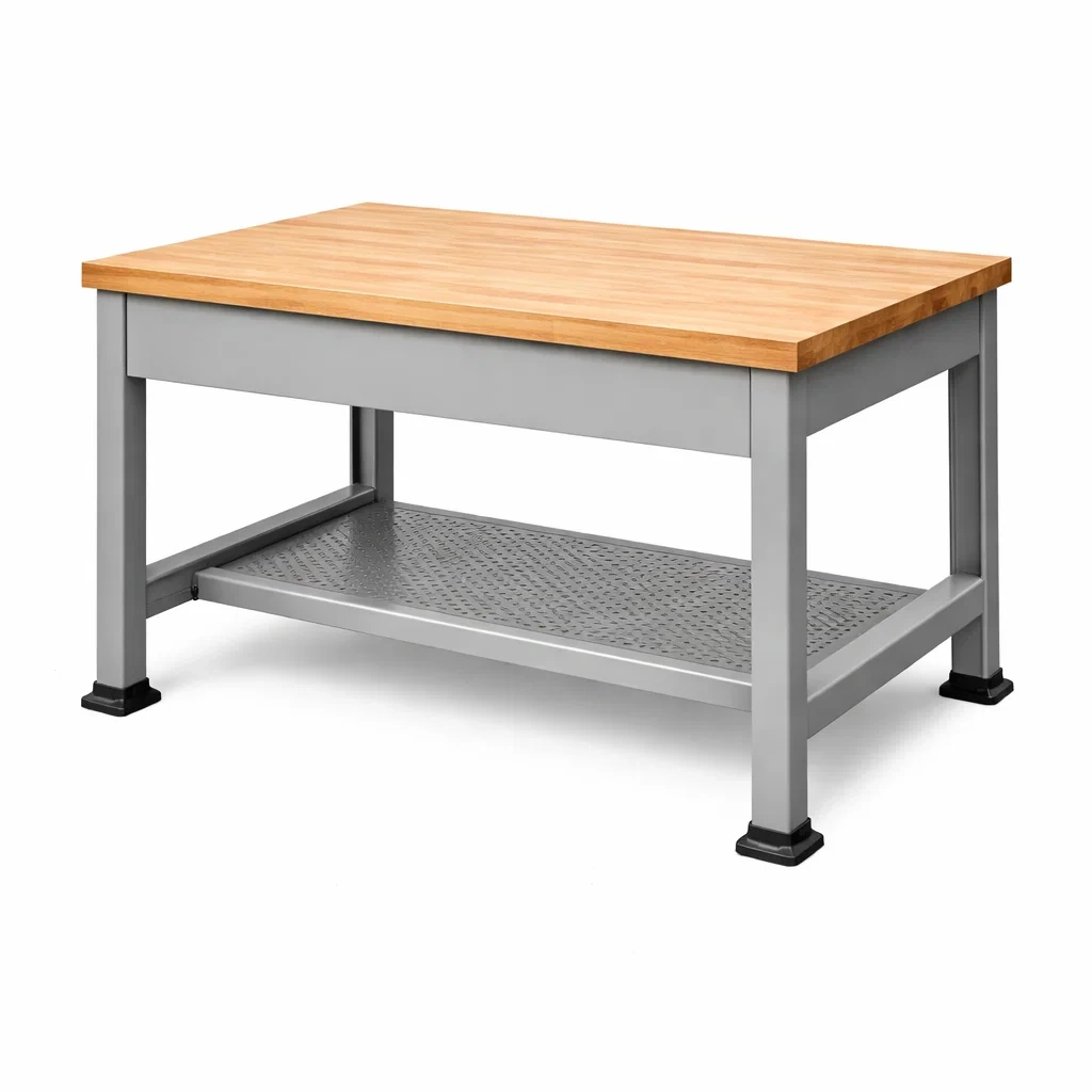 Établi en bois de hêtre et métal avec étagère 120x60x85 cm